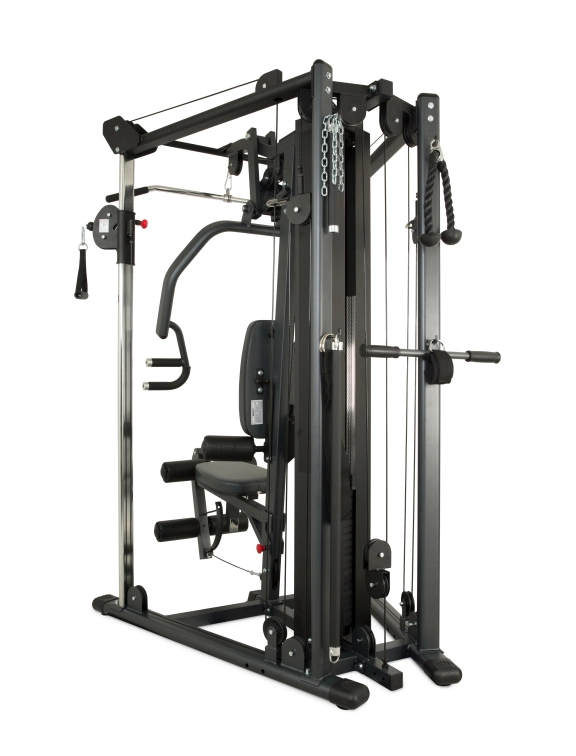 The Attain MFT Multi Functional Trainer combines all the benefits of a functional trainer and a home gym into a compact and sleek machine. It comes equipped with an adjustable arm for chest press exercises, a seat with a leg extension station, a high pulley and low pulley, two height-adjustable pulleys on each side, and a pull-up bar. Additionally, it can be optionally expanded with a leg press, giving you a complete home gym at your disposal. The machine uses a weight stack as resistance, which is quick and easy to adjust. The Attain MFT is a perfect solution if you want to train your whole body in a limited space while valuing comfort.